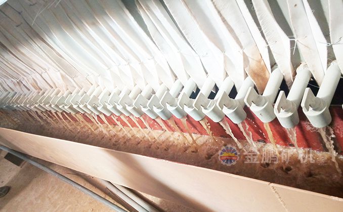 浸出槽尾礦經緩沖槽由泵輸送到全自動廂式壓濾機,壓濾后的水流入循環(huán)水池以備循環(huán)利用,濾餅經帶運輸機運到尾礦堆場,卡車將尾礦運到尾礦庫。