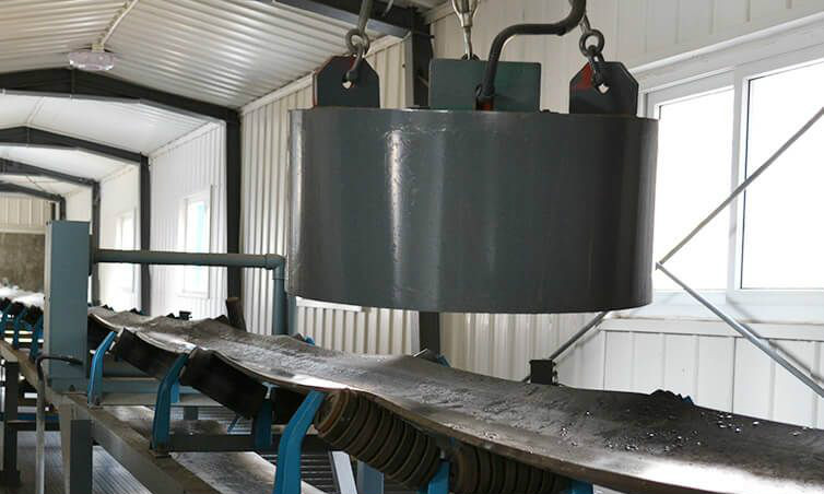 在金礦、石墨礦、螢石礦選礦工藝流程中,會看到在顎式破碎機處理完大塊礦石之后,為圓錐破碎機給料之前,需要經(jīng)過電磁除鐵器處理和金屬探測儀的檢測。