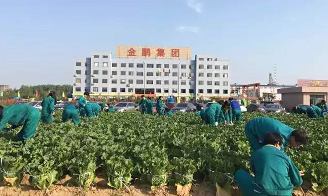 金鵬礦機(jī)11月18日清晨,金鵬集團(tuán)利用早會(huì)時(shí)間組織全員一起把公司豐收的有機(jī)無公害大白菜進(jìn)行窖藏,每個(gè)人臉上都洋溢著快樂自豪的喜悅,我參與,我收獲,我快樂!