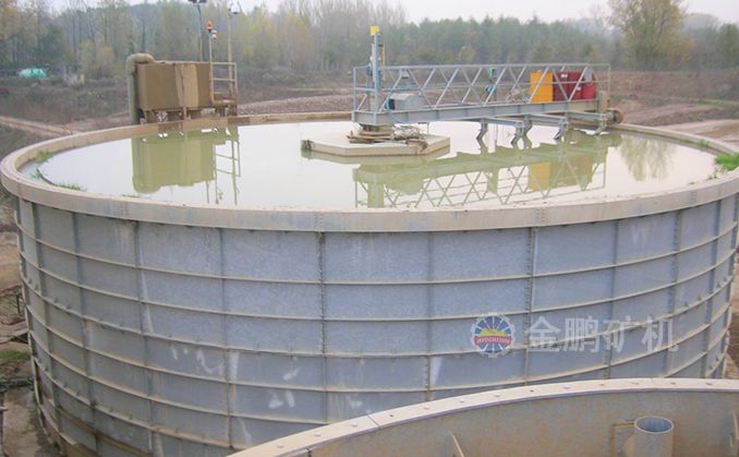 礦漿由給礦筒給入,自由沉降于耙子區(qū)的礦漿受刮板的壓力進(jìn)一步濃縮,由耙子逐漸刮向池子中心,由排礦口靠重力排入下一層池子?清水經(jīng)分配箱進(jìn)入最下層對物料進(jìn)行最后的洗滌,最下層的溢流返回分配箱進(jìn)入第二層對物料進(jìn)行洗滌,第二層的溢流返回分配箱進(jìn)入第一層對物料進(jìn)行洗滌,第一層的溢流經(jīng)溢流堰排出,經(jīng)三次洗滌的物料經(jīng)底部排出。
