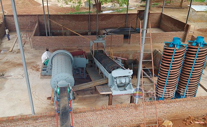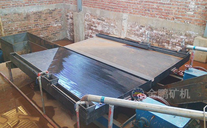 多年實踐證明:除鐵器+跳汰機+搖床+斜管濃密箱的組合系統(tǒng)重選回收率高,流程暢通、運行可靠,跳汰機通常作為粗選設(shè)備安放于磨機分級設(shè)備之間,磨機排礦首先給至跳汰機,其分選出的重礦物給至搖床再選,輕礦物自流至分級機。最終的重選毛金品位可達40-45%,可直接冶煉成高純度金錠。在這種配置中,跳汰機是典型的體現(xiàn)“能收早收”原則的重選設(shè)備,有利于提高重選和總回收率;離心機+搖床的配置也在某些選金廠得到應(yīng)用。